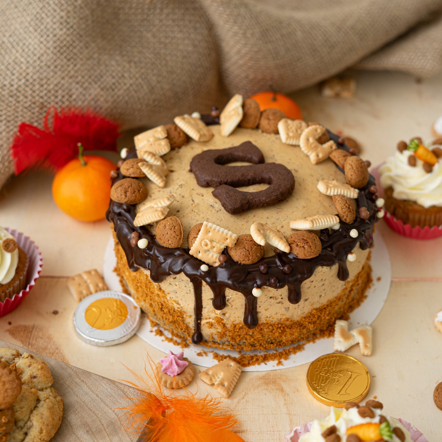 Ontdek het Sinterklaasassortiment voor 6 december. Een Sinterklaas chocolade-speculaastaart, Sinter speculaas cookies...