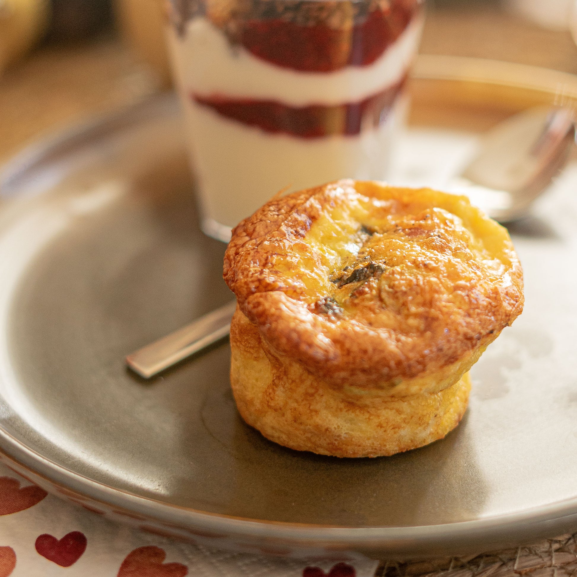- eimuffin met spek, tomaat, lente-ui & spinazie (eitjes van Weiland eitjes)
