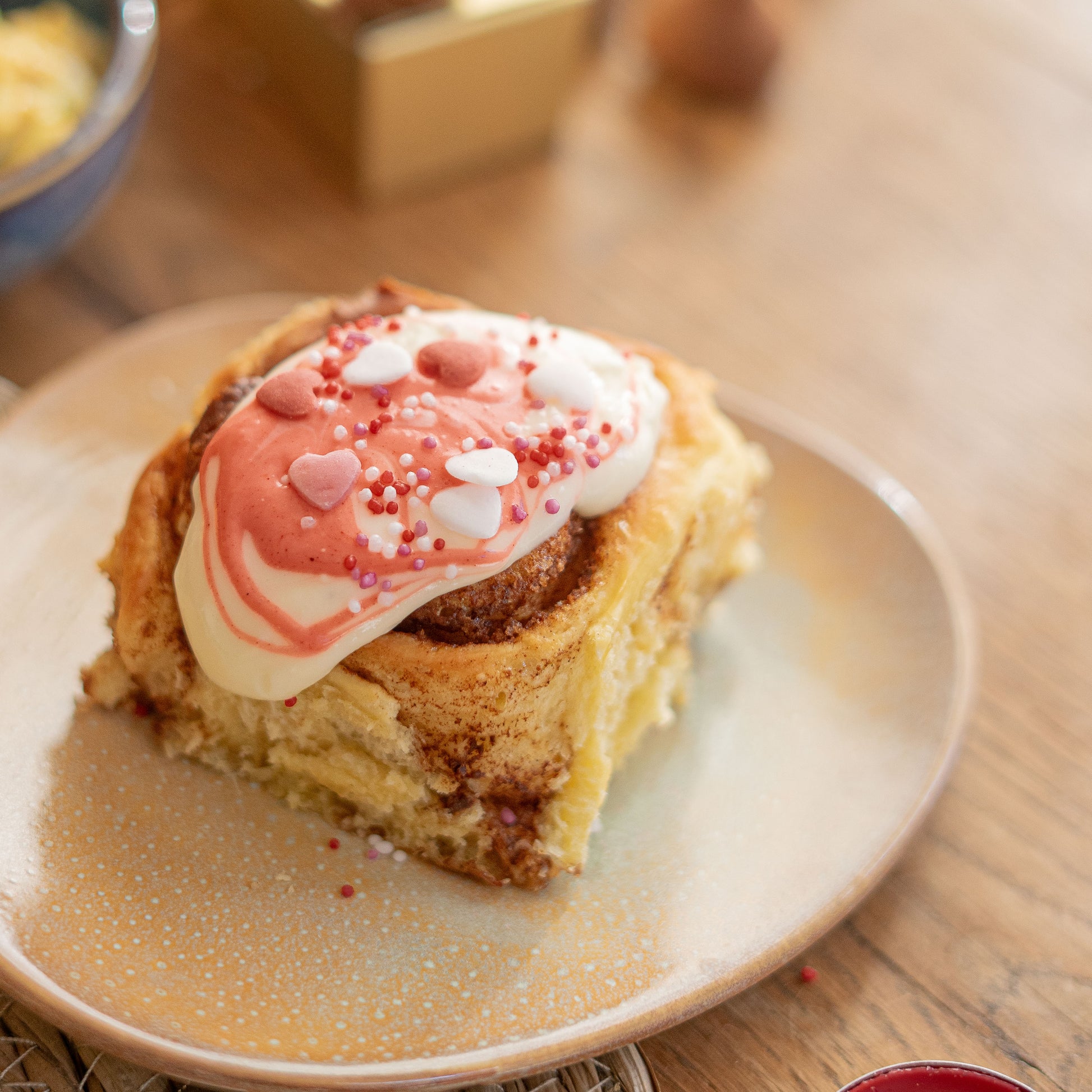 - kaneelbroodje met creamcheese topping